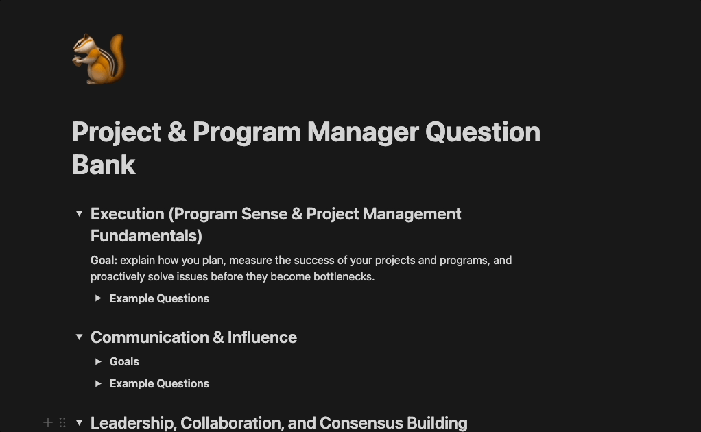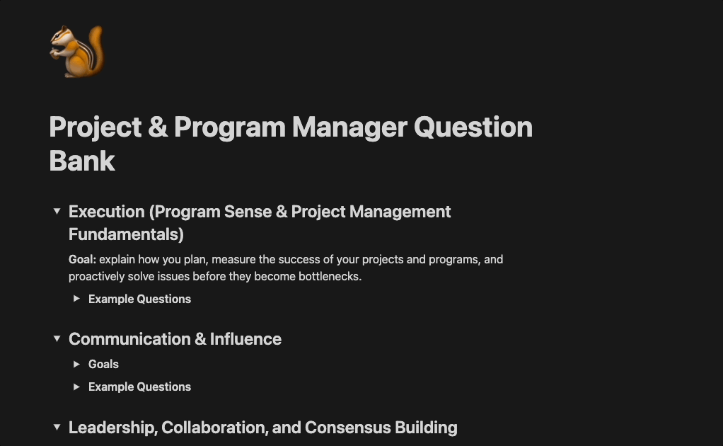 This question bank has 100+ curated Project and Program Manager interview questions, captured directly from current interview candidates at top-tier companies.